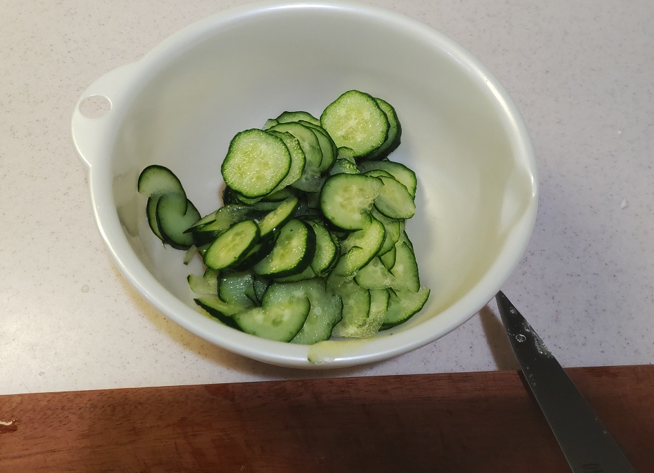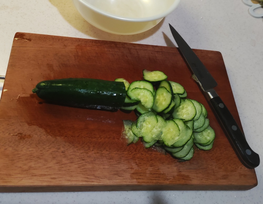 きゅうりを薄い輪切りにする