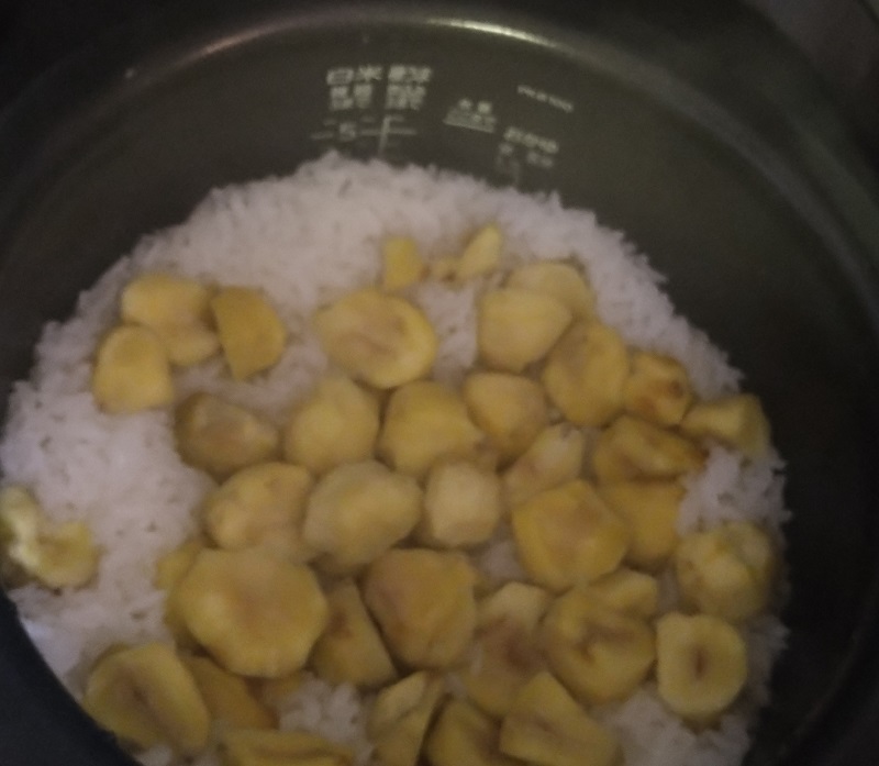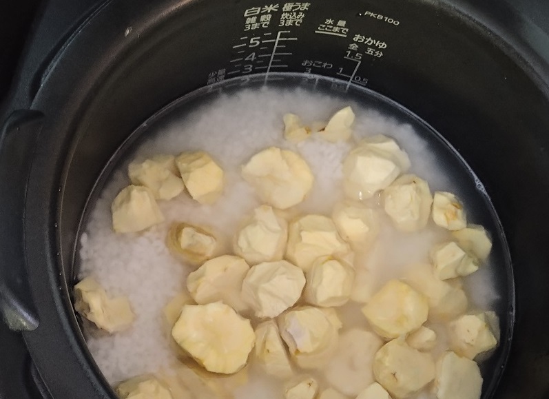 剥き栗300gに対して、お米は2合。塩は小さじ1杯。