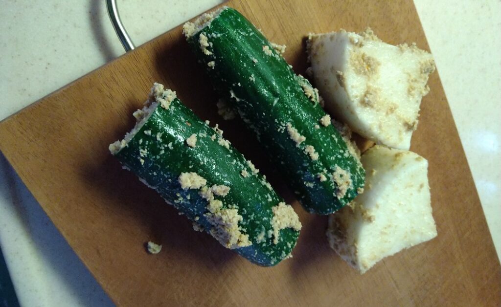 きゅうりは1/2、大根は1/4に切って漬けてます。