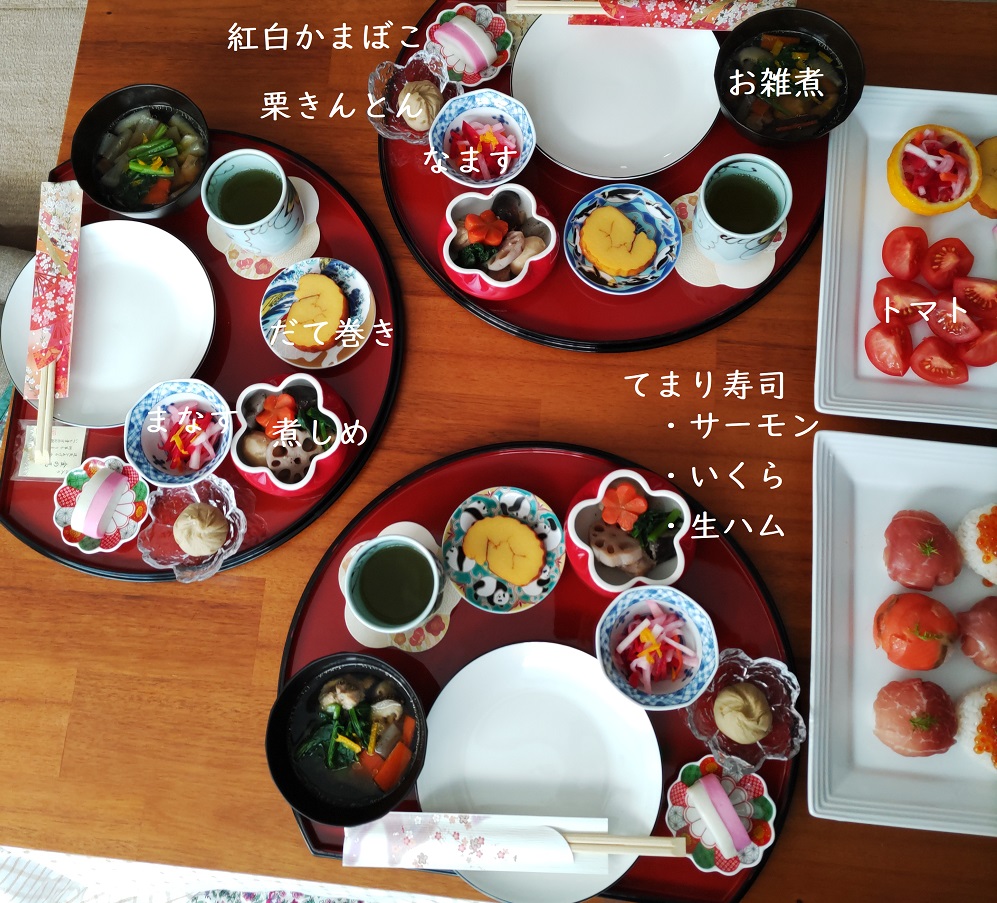 今朝は7時半に起きて、わが家流のおせち料理を用意しました。