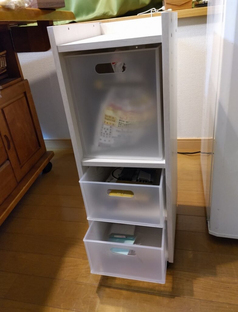 そして、半透明の引き出しを付けた。(縦型¥599+クォーター¥399ⅹ2)