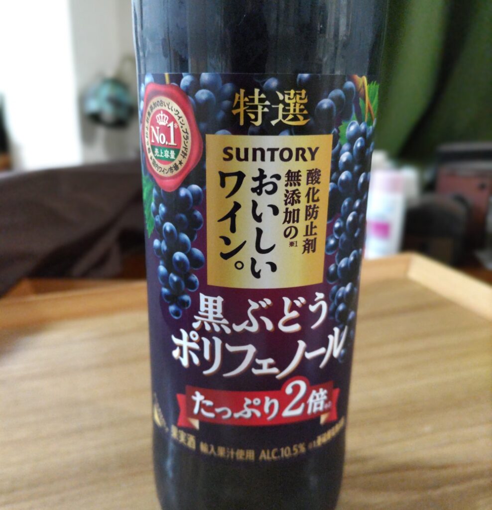 先日、近所のドラックストアで見つけた、サントリーの黒ぶどうワイン